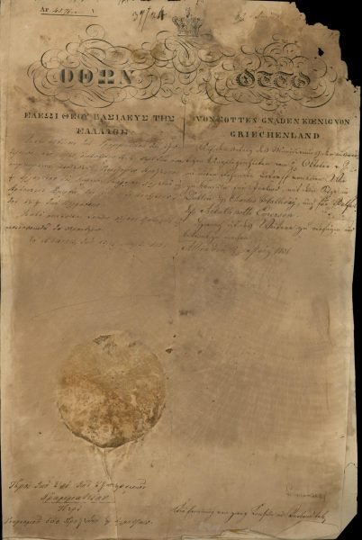 [3]15 Οκτωβρίου 1833. Επιστολή του Βρετανού Βασιλιά Γουλιέλμου Δ΄ προς τον Βασιλιά Όθωνα με την οποία εκφράζει την ευαρέσκειά του για την αποστολή στο Λονδίνο του Μιχαήλ Σούτσου, Πρεσβευτή της Ελλάδας στο Παρίσι, προκειμένου να παραδώσει ευχαριστήρια επιστολή από τον Βασιλιά της Ελλάδας για τη βοήθεια που προσέφερε ο Βρετανός Βασιλιάς κατά τη μετάβαση του Όθωνα στην Ελλάδα. Ο Σούτσος μετά το Ηνωμένο Βασίλειο, μετέφερε παρόμοιο μήνυμα στον Ρώσο Αυτοκράτορα Νικόλαο Α΄, ενώ μετά από λίγο διάστημα διαπιστεύθηκε και ο πρώτος Έλληνας Πρεσβευτής στο Ηνωμένο Βασίλειο Σπυρίδων Τρικούπης.